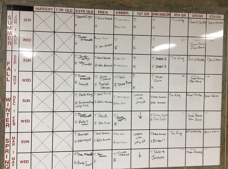 As we get to March, there may be some adjustments depending on what the turn-out looks like. The primary requirement for Bible class is that we have a teacher and students, if one or more of those is missing we can't really have a bible class for that age group! :)